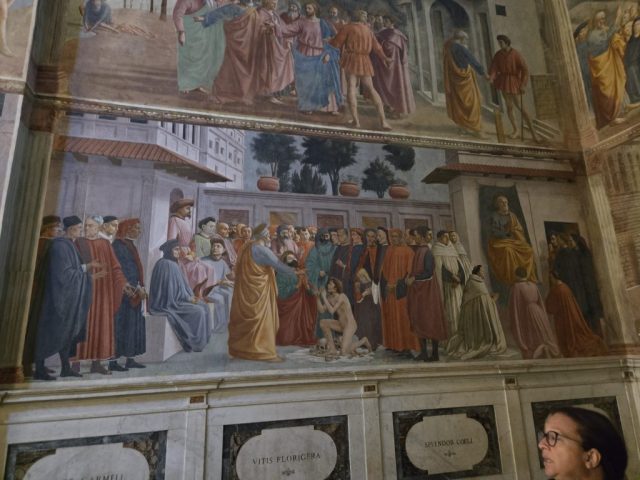 Following a quick tour of Santa Maria Novella, Dr. Lev led us on a “brisk walk” (for everyone else, it was a ‘power walk’) across Florence to the Brancacci Chapel. We had timed tickets for the visit to the chapel, but rather than forcing us to enter the chapel as two distinct groups (each allowed 10 minutes in the chapel), they allowed us in as a single group and gave us the full 20 minutes in the chapel. To say that Dr. Lev was elated to go into greater detail about the artwork in the chapel was an understatement. She is a woman who deeply loves what she does, and causes her listeners to share her passion for Art History.