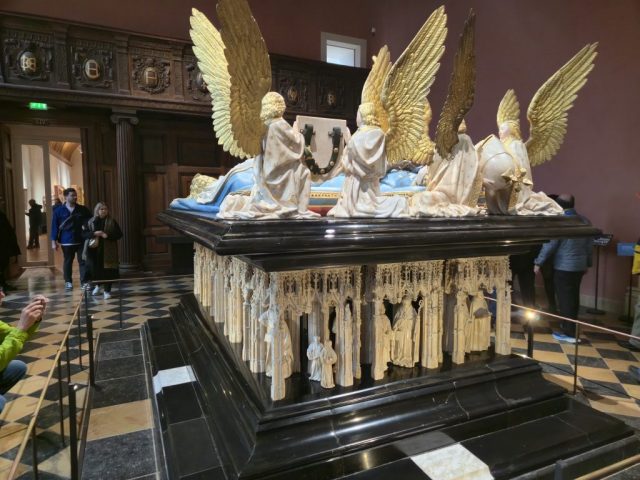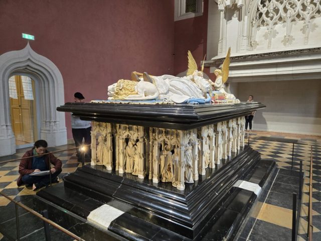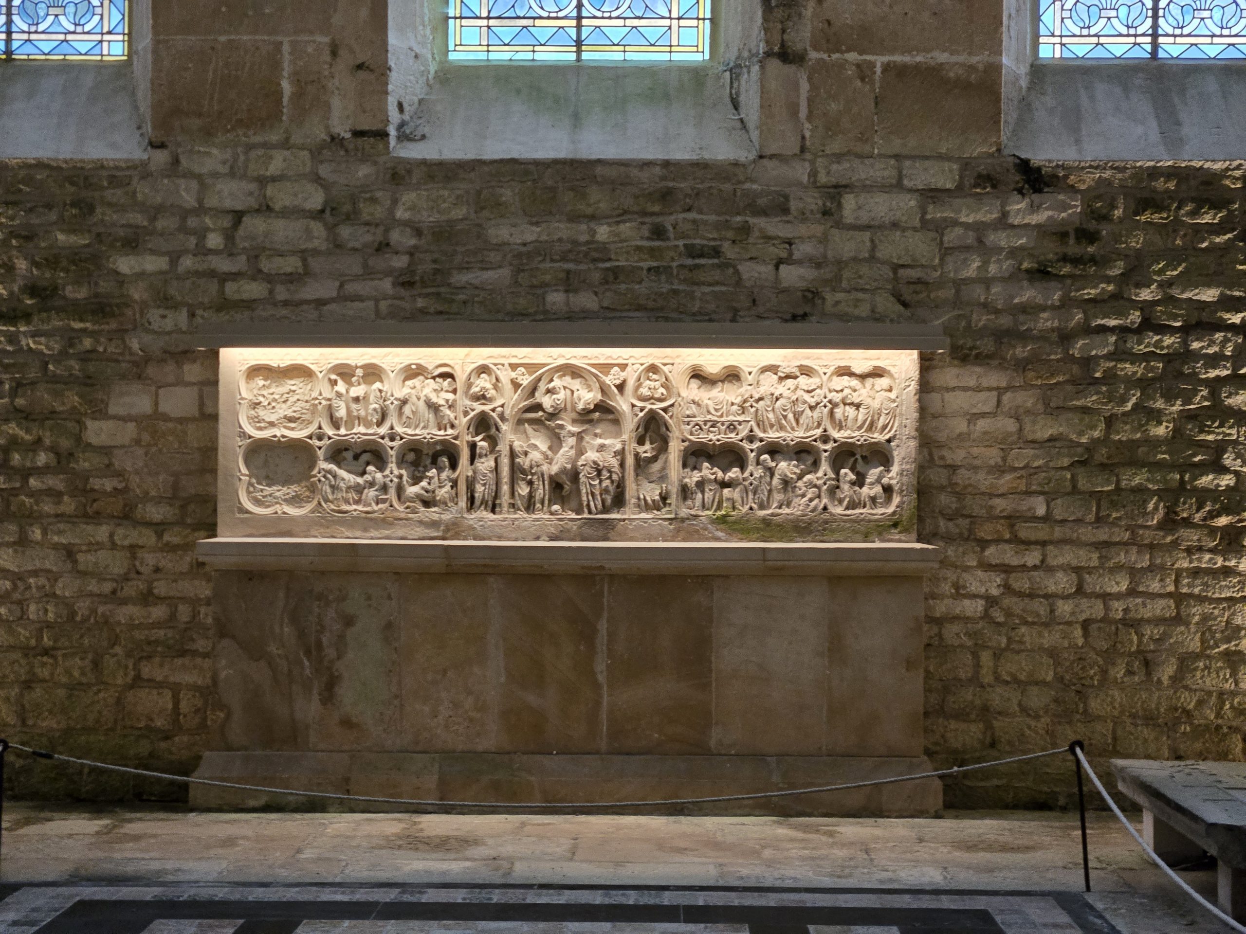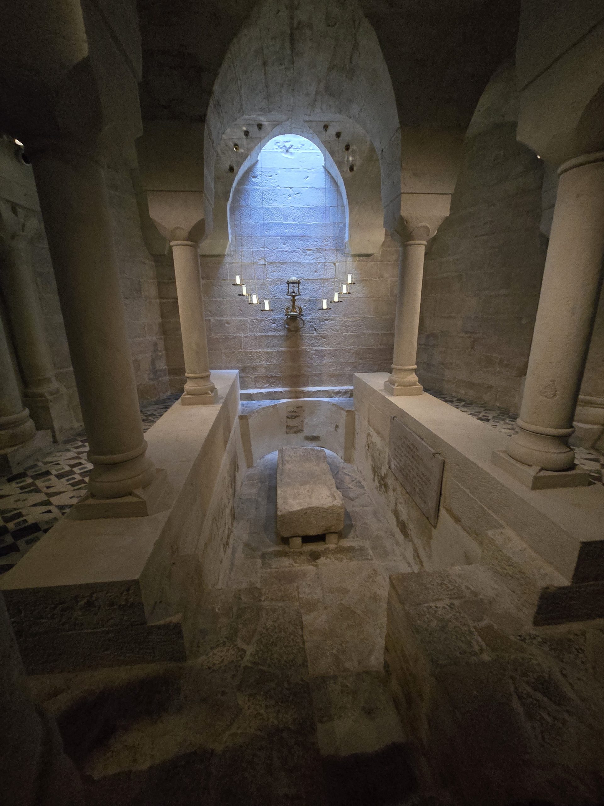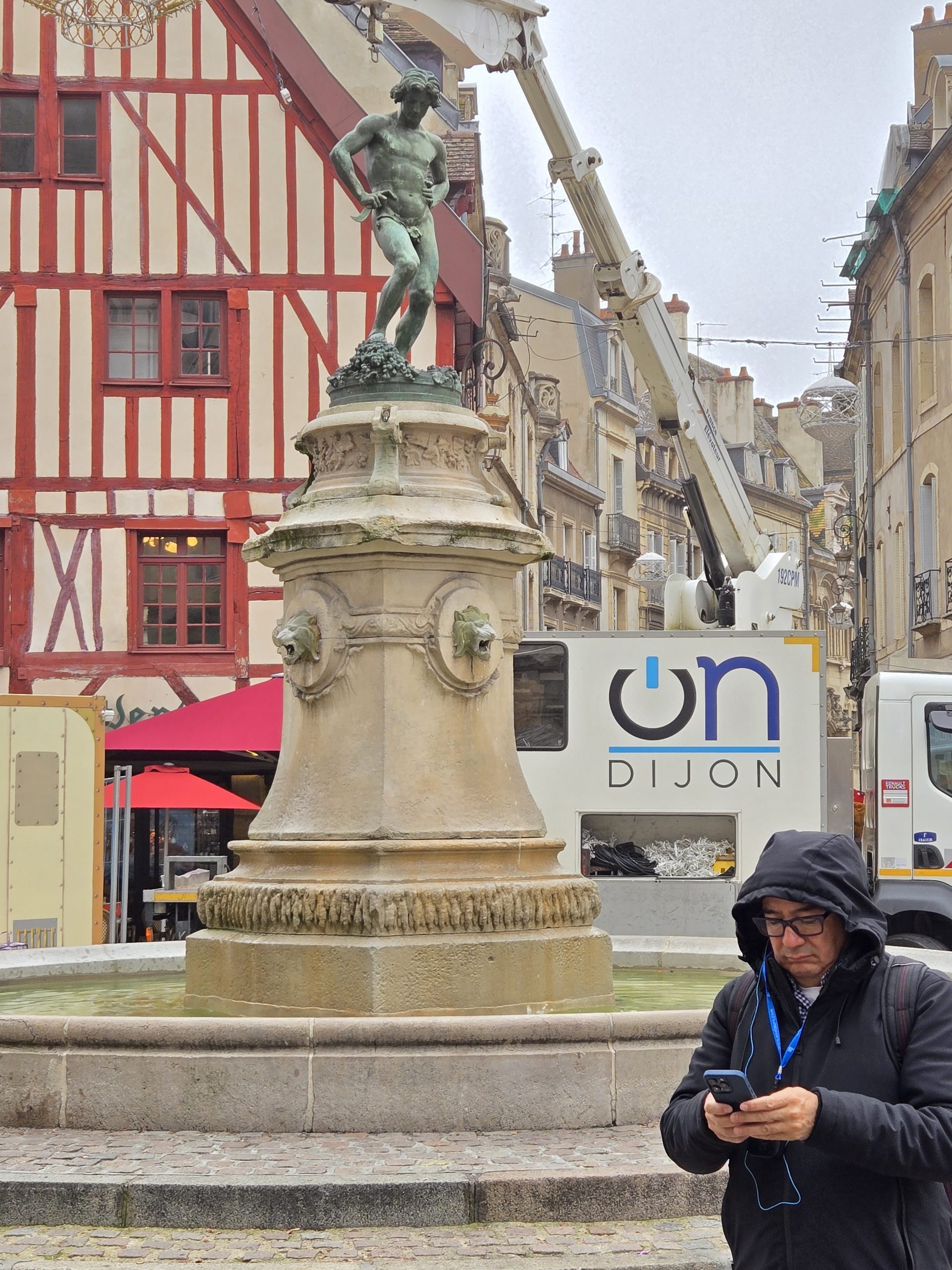 | Our first stop on Monday, 11 November 2025, was at the Cathédrale of Saint-Bénigne which tells two stories at once: the high, patterned roofs and spire that mark Dijon’s skyline, and the older circle below where the city keeps its first memory of the place. Beneath the Gothic shell lies the year-1000 rotunda’s crypt, reopened in 2024 after years of careful work, which makes the building read from bottom up: early medieval martyrium, 13th- to 14th-century church, modern city around it. In 1792 the abbey church became the cathedral as Revolutionary reforms remapped the Church. |