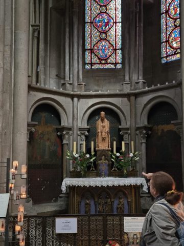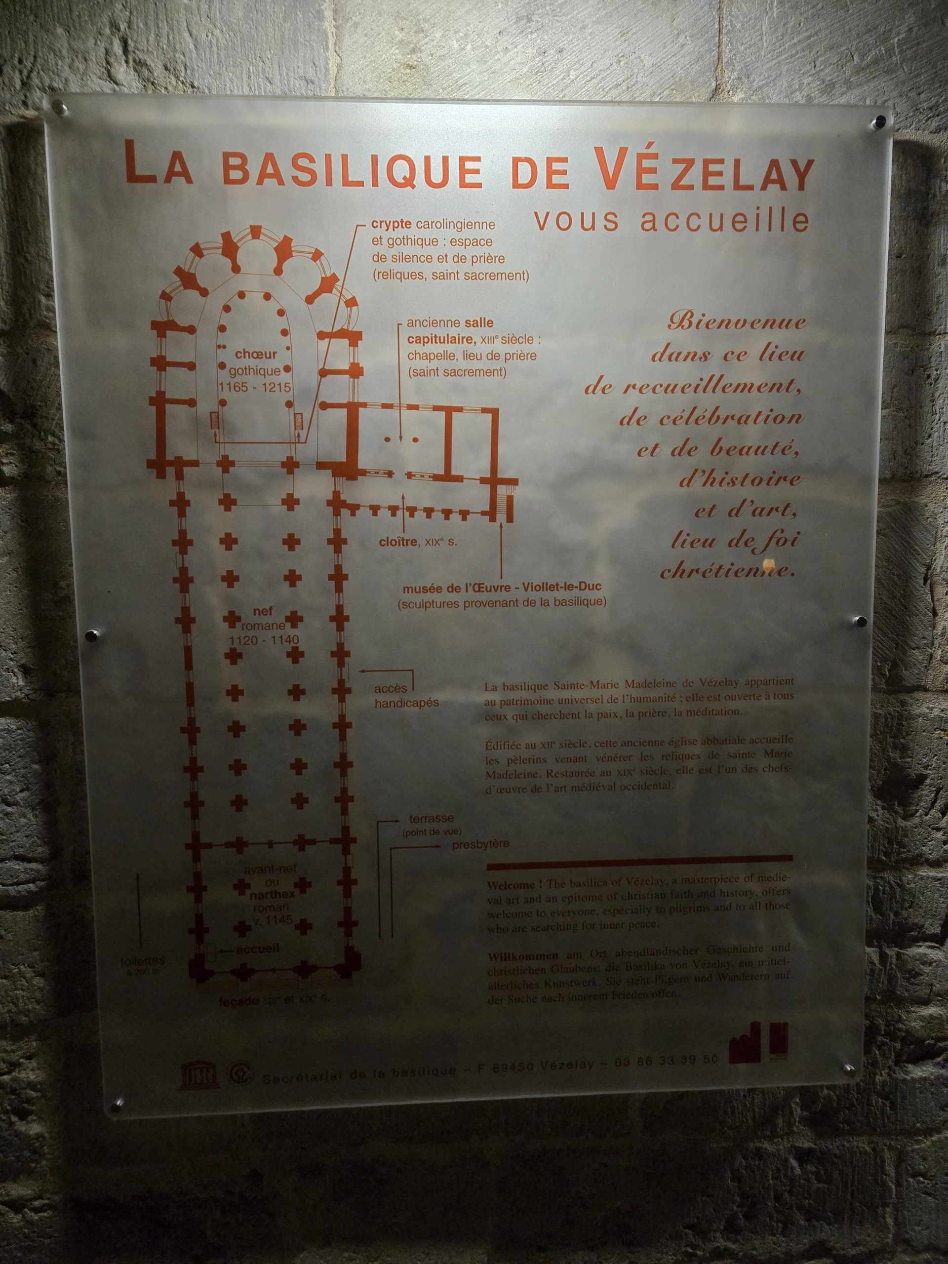 | The day concluded with a trip to the Basilica of Vezelay. Established in the 9th century as a Benedictine abbey, the church became famous in the mid-11th century when the belief spread that it held the relics of St Mary Magdalene. It became a place of pilgrimage, all the more popular because it was located on one of the roads leading to Santiago de Compostela. The city benefited from the influx of pilgrims, as in the 12th century its population was between 8,000 and 10,000 inhabitants, a considerable number for the time. Vézelay then became a centre of great importance for the West. In 1146, St Bernard preached the Second Crusade there before King Louis VII, Queen Eleanor and a throng of nobles, prelates and people gathered on the hill. In 1190, Richard the Lion-Hearted and Philip Augustus met there to leave for the Third Crusade. In 1217, Francis of Assisi chose the hill of Vézelay to found the first Franciscan establishment on French soil. |