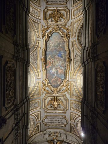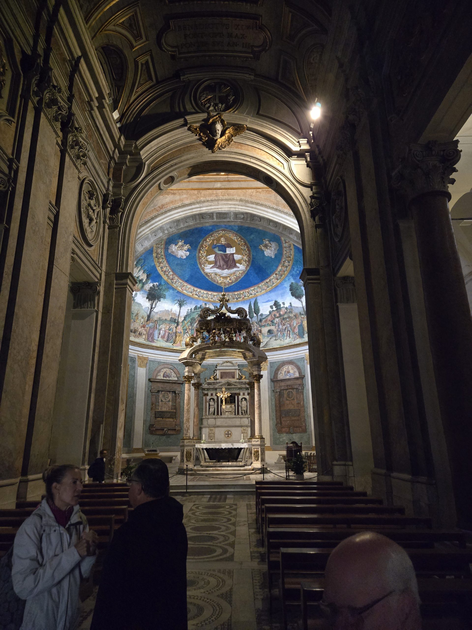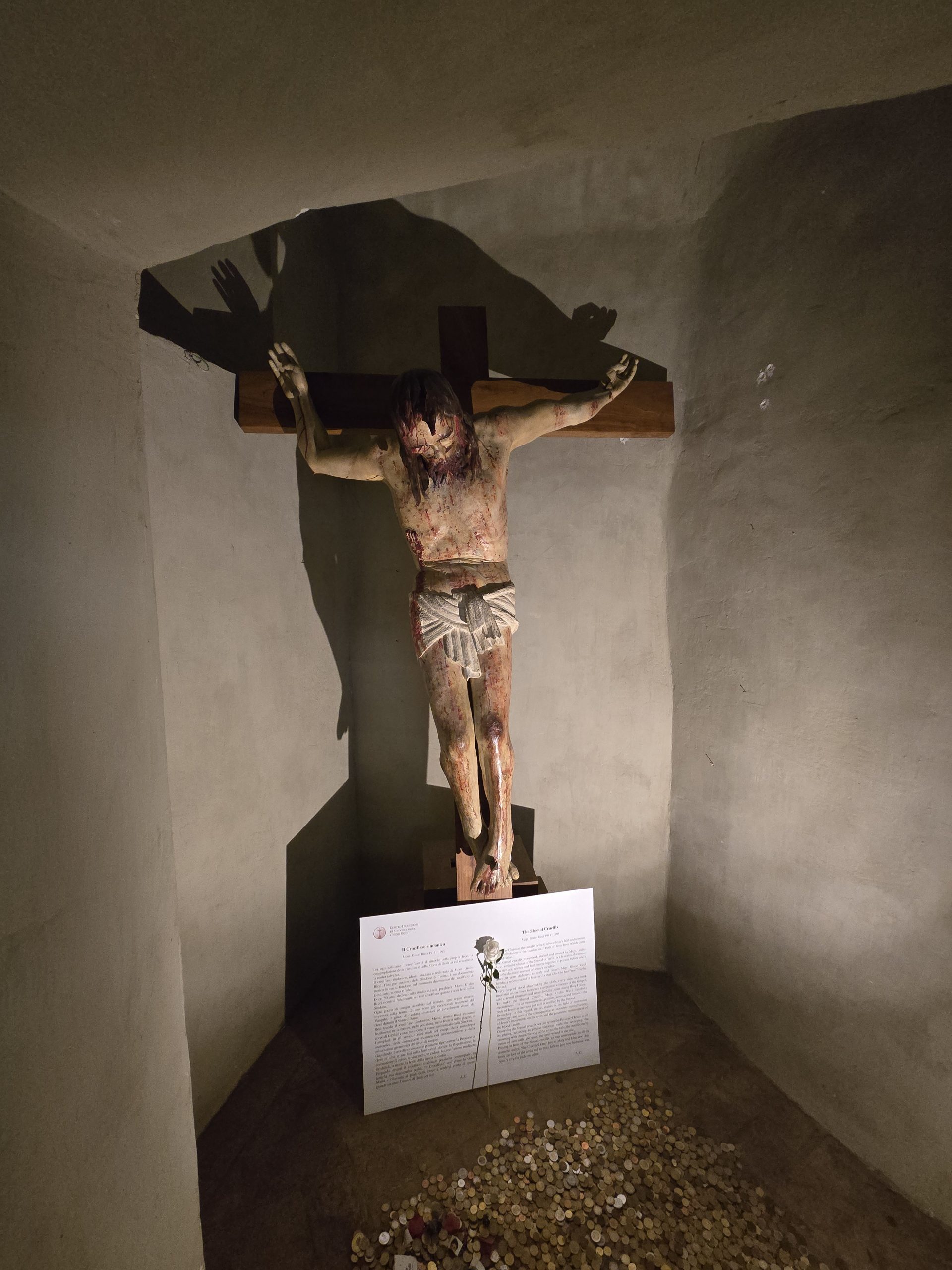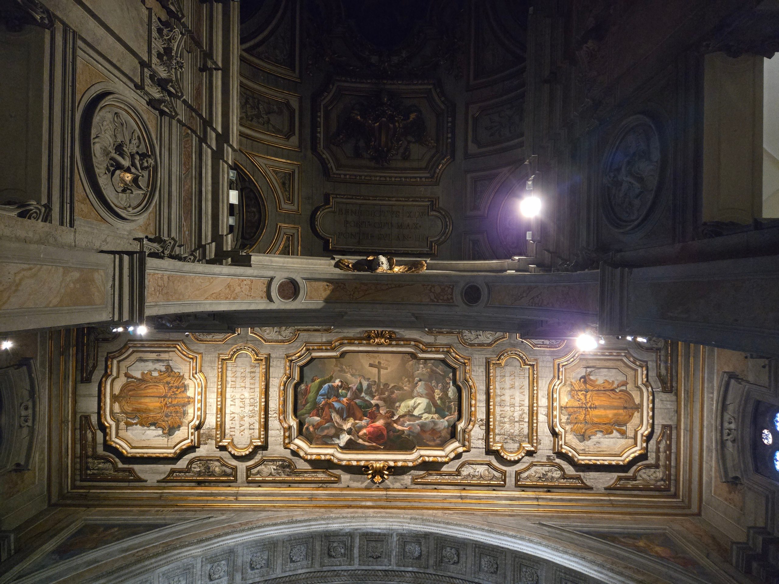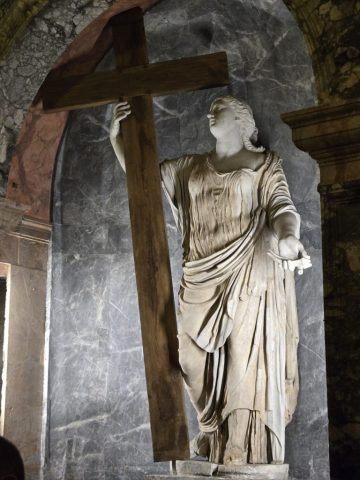 At the time of the Emperor Augustus the area where the basilica now stands was a residential zone on the outskirts of the City. Indeed in the 3rd century, an imperial residence was built on the site. When Constantine moved the capital of the empire to Constantinople, the area remained in the hands of his mother Helen, who decided to transform part of the residence into a chapel for the relics of the Holy Cross, which she herself had found at Calvary during her pilgrimage to the Holy Land in 325. Around the original chapel the present basilica was later built. There have been various restoration works and modifications to the complex across the centuries: especially notable was that of Cardinal Mendoza (1478-1495), during which a mortuary box with the Titulus Crucis was found in the apsidal arch. The basilica was considered, right from the start, as a kind of reliquary complex, whose prime function was to protect and preserve the precious relics of the passion of Jesus. The chapel houses a life-size copy of the Holy Shroud – as well as a crucifix, created by Msgr. Giulio Ricci, who created it by using the images from the Shroud of Turin. The name of the basilica includes the words “in Jerusalem” because consecrated earth from Mount Calvary in Jerusalem was laid in the foundations. |