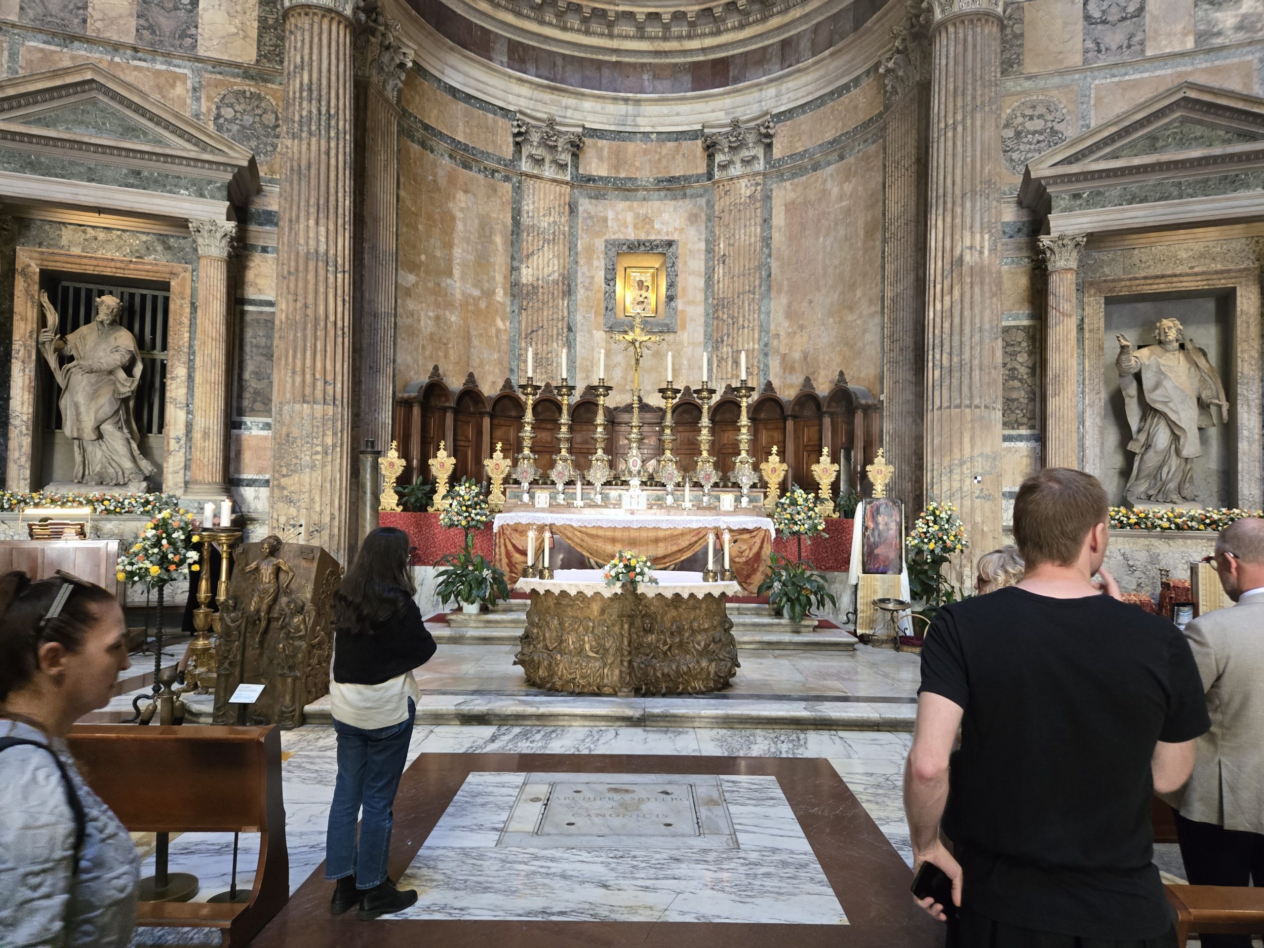 I never want to hear anyone complain about a Mass that goes 62 or 65 minutes (which is a rarity for me, even on Christmas or Easter); the Mass in the Pantheon took the full 90 allotted minutes! At 2 minutes to Noon, Mass ended and we were allowed to scurry through the Basilica as they prepared to let in guests. I took every opportunity to snap pictures while there were the 150 of us who went to Mass were the sole visitors to the place.