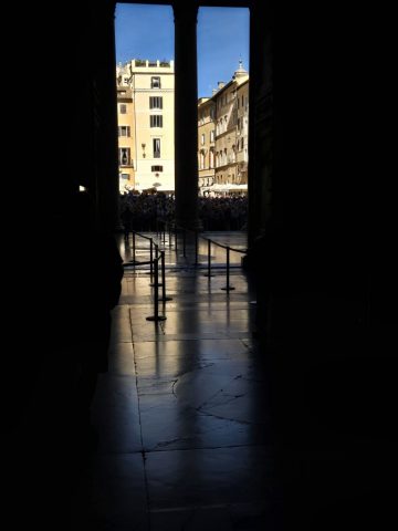 As I was standing in the line for 10:30 Mass on All Saints Day (I mean, where better to attend Mass on the Feast of All Saints than to go to the place where it all began in 609ad!) I heard some English speaking visitors bemoaning the fact that the Pantheon was being closed to visitors so Mass could be celebrated. “I didn’t even know this place was an active functioning church” the gentleman said. He then went on to lament that it was being closed until NOON → and he emphasized the word ‘noon’ rather dramatically. Inside I was thinking that 10:30 Mass would go until about 11:30, and we’d have about 30 minutes inside the Pantheon to take pictures before it reopened to the public.